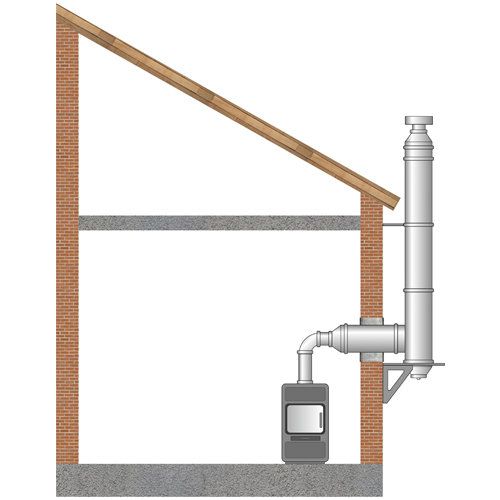 2. Способ монтажа дымохода снаружи строения с боковым проходом через стену: