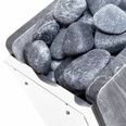 Простые формы каменки выгодно подчеркнуты 4 вертикальными камнями талькохлорита, которыми облицованы передняя и задняя стенки печи. Материал боковых стенок представляет собой высококачественную нержавеющую сталь, защищающую все внутренние элементы прибора от влаги, температурных перепадов и коррозии.