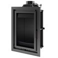 В высокую распашную дверцу вставлено стекло из жаропрочной стеклокерамики, через которое можно любоваться игрой живого пламени и следить за сгоранием дров.