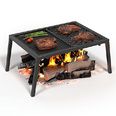 Плита Гриль и решётка Стейк для мангала Везувий –  удобное приспособление для приготовления пищи на открытом огне. Чугун, быстро нагревается и накапливает тепло, тем самым позволяя применять плиту и решётку для готовки практически любой еды. В комплект входит подставка, которую очень удобно использовать для плиты и решетки на природе, за городом, и там, где нет возможности использовать мангал.  Небольшой вес и малые габариты подставки позволяют положить её багажник автомобиля.